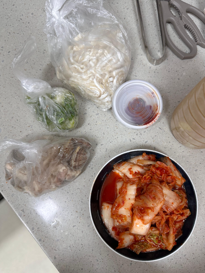 육수와 김치, 닭고기와 바지락 고명, 대파, 다대기 이렇게 들어있더라고요. 먹는 법은 닭육수를 부어 끓으면 면과 고명을 넣고 8-9분 끓이며 면이 익으면 끝! 남편이 집에서 먹어도 맛있다고 합니다. 뭔가 가게에서 먹는게 조금 더 진한 맛인가? 싶지만 집에서도 충분히 맛있으니 웨이팅 지옥을 견딜 수 없는 분들이라면 포장도 추천드립니다.